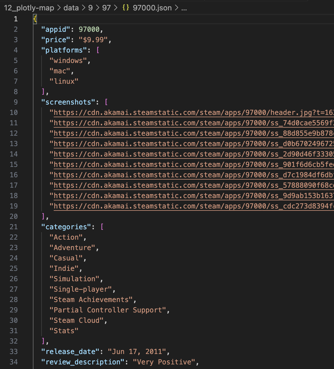 Since there’s over 200,000 games on Steam, to make my life easier when browsing this directory remotely, the individual json files are stored in subdirectories split by the first two digits of the app id.