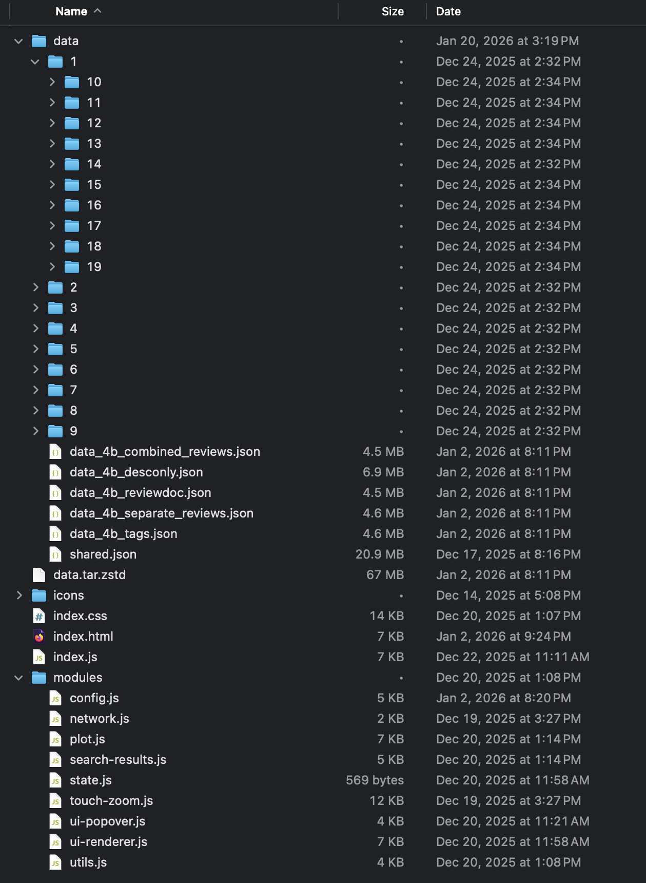 - It requires having a server online to process the freeform text input into an embedding. I wanted something I could share indefinitely as static files, offloading all of the logic to the client.