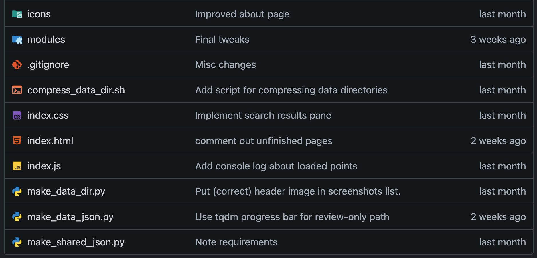 I’m hoping I structured this project in a way that makes it very easy to update. Very minimal JS updates will need to be done in order to deploy an updated dataset, so hopefully I can keep that updated indefinitely as well.